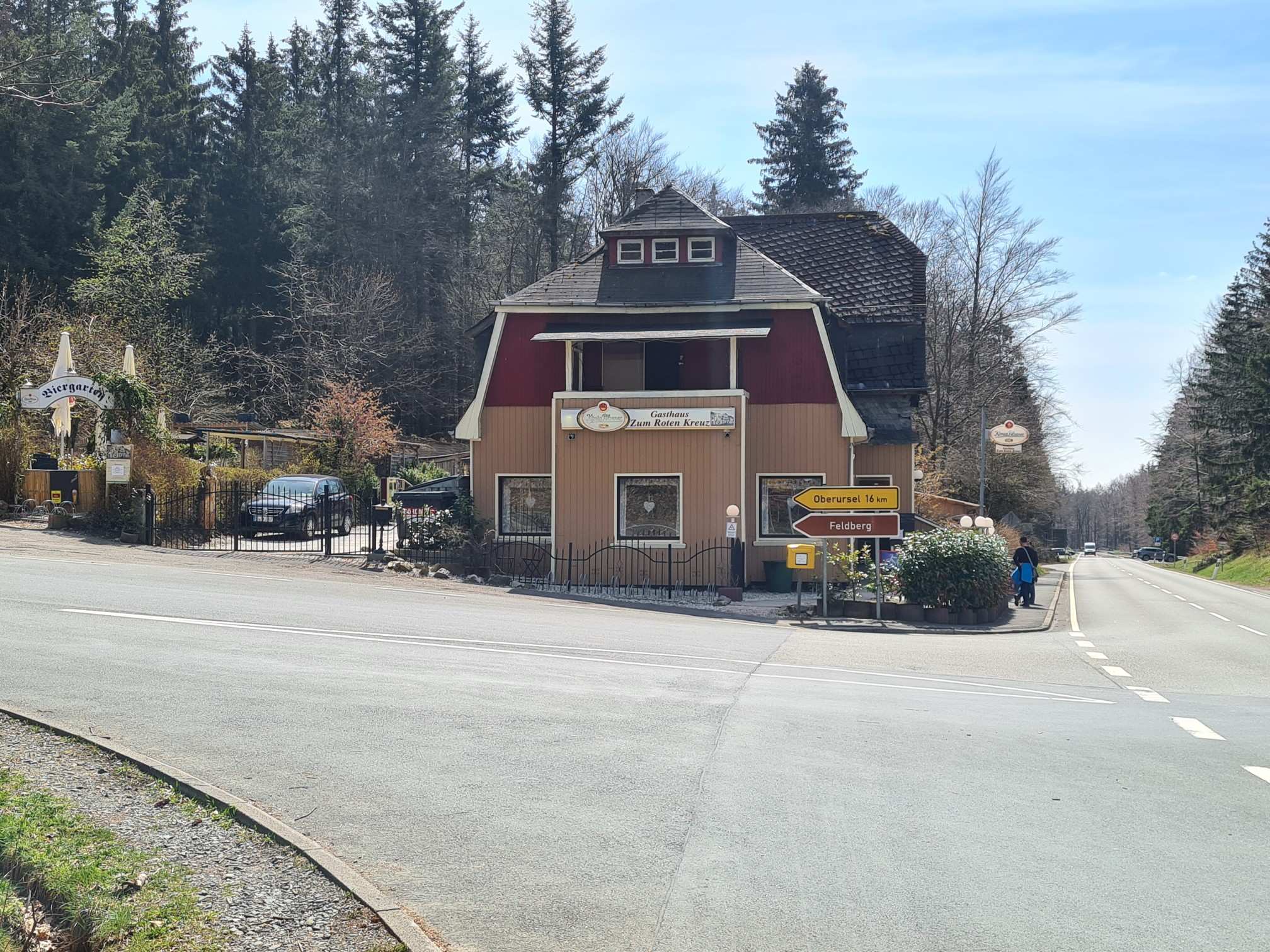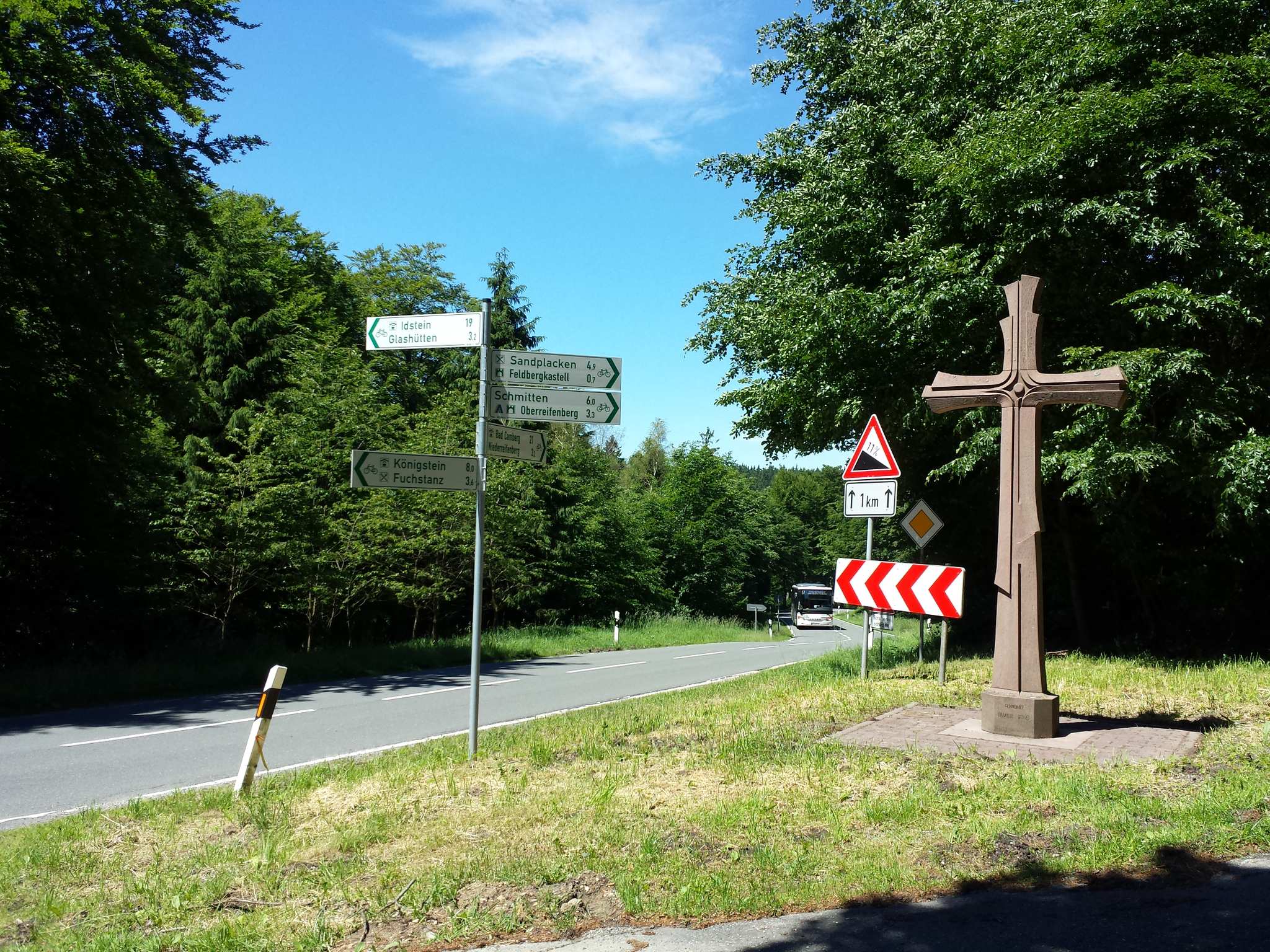 Das rote Steinkreuz auf knapp 700 hm ist die Abzweigung hoch zum großen Feldberg.