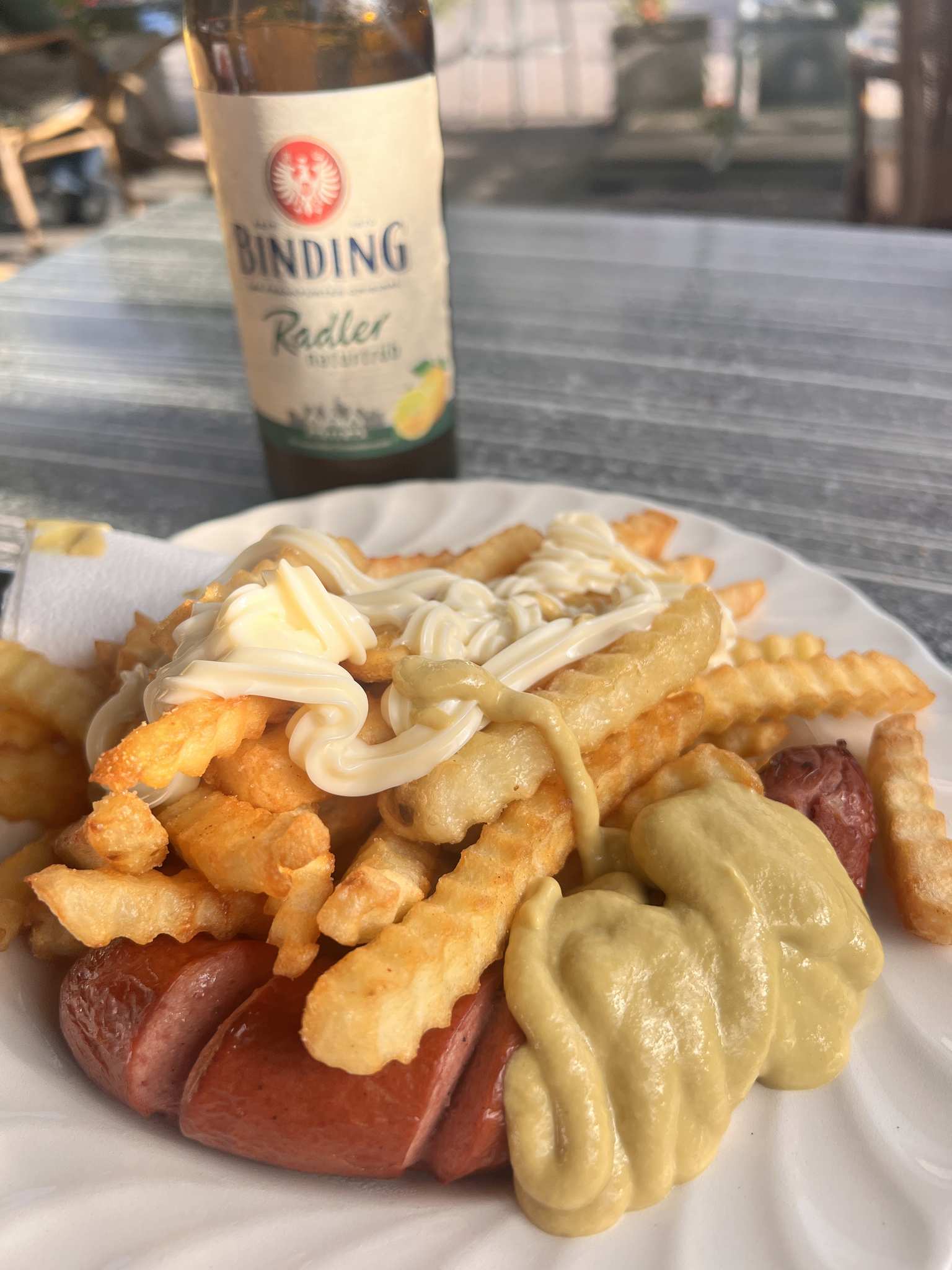 Immer wieder nach der Tour eine Einkehr Wert. Knackige Pommes zum kleinen Preis. Alles tiefen entspannt da, da schmeckt das Radler 😊 Gibt auch Kaffee und Kuchen da und selbstverständlich richtig gutes Bier 🍺