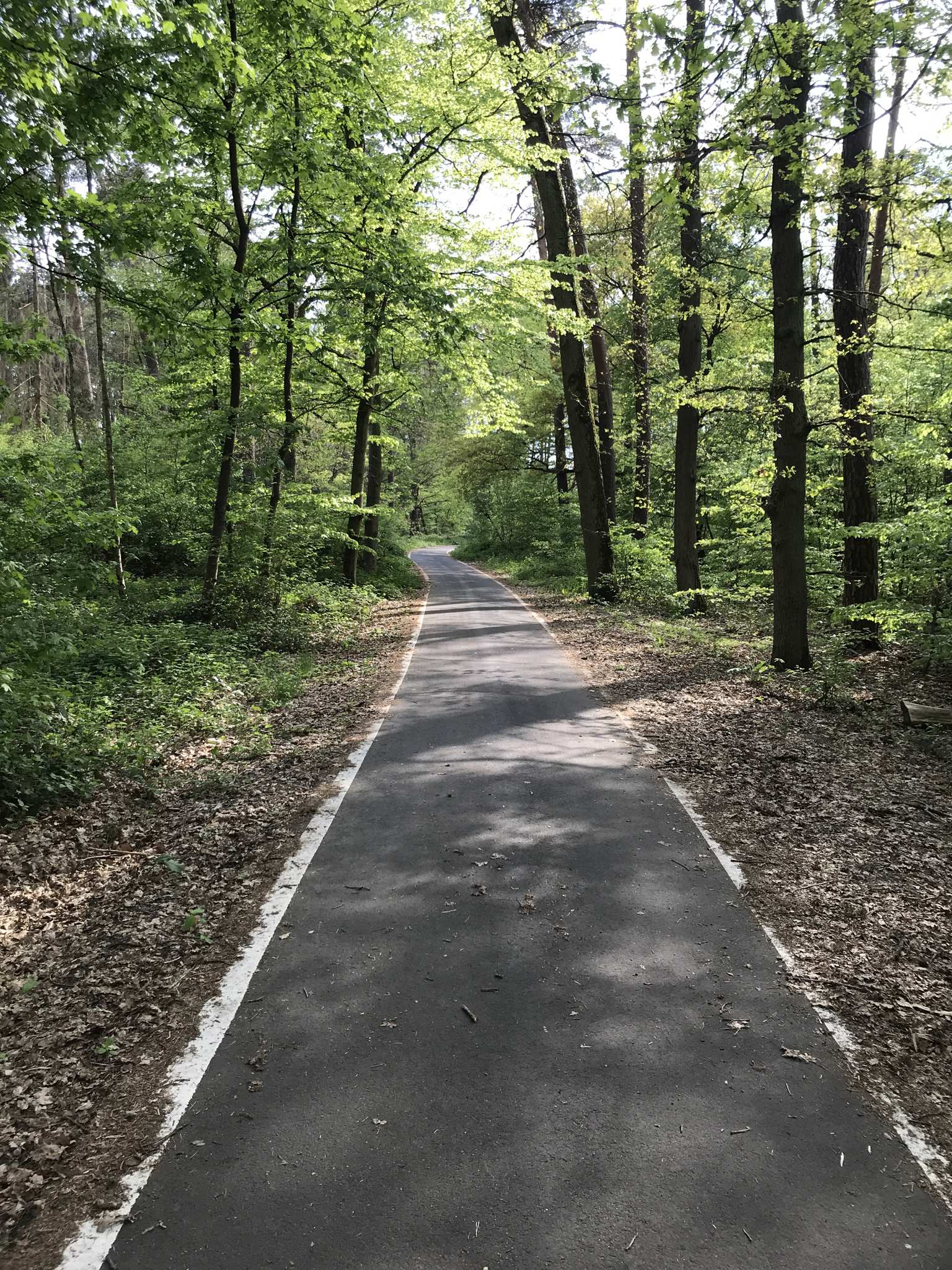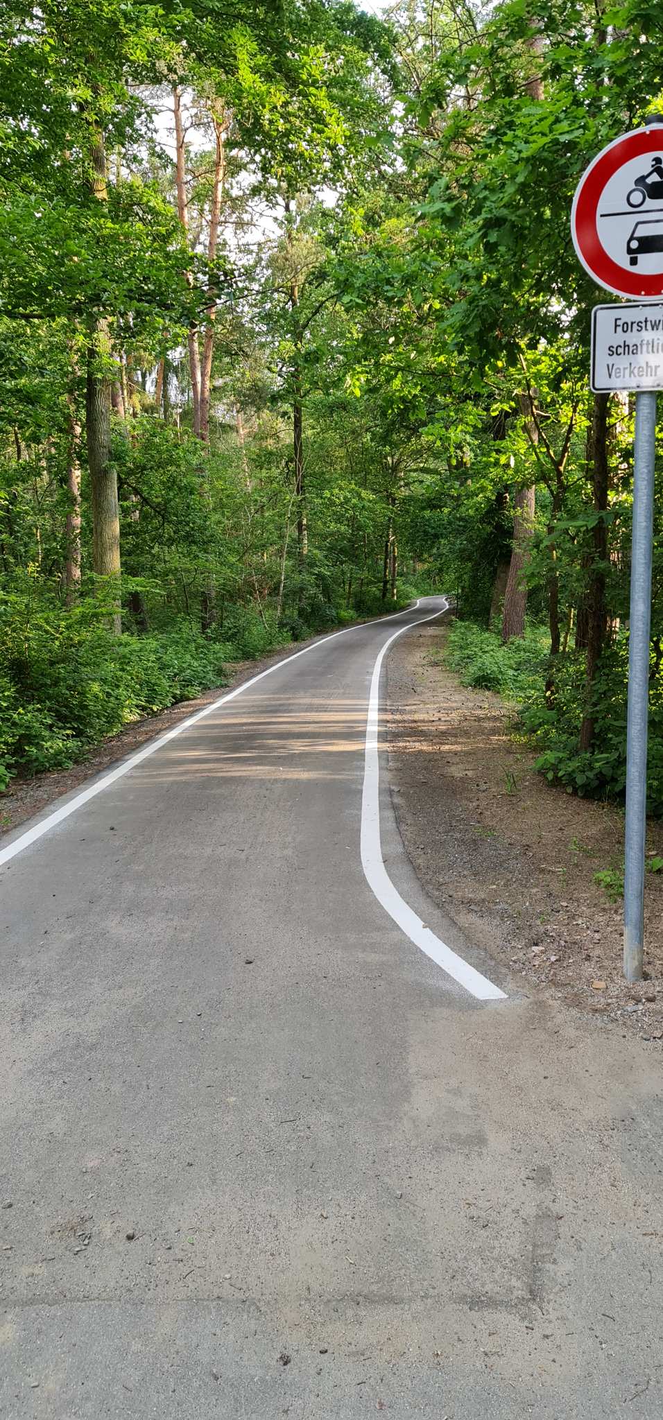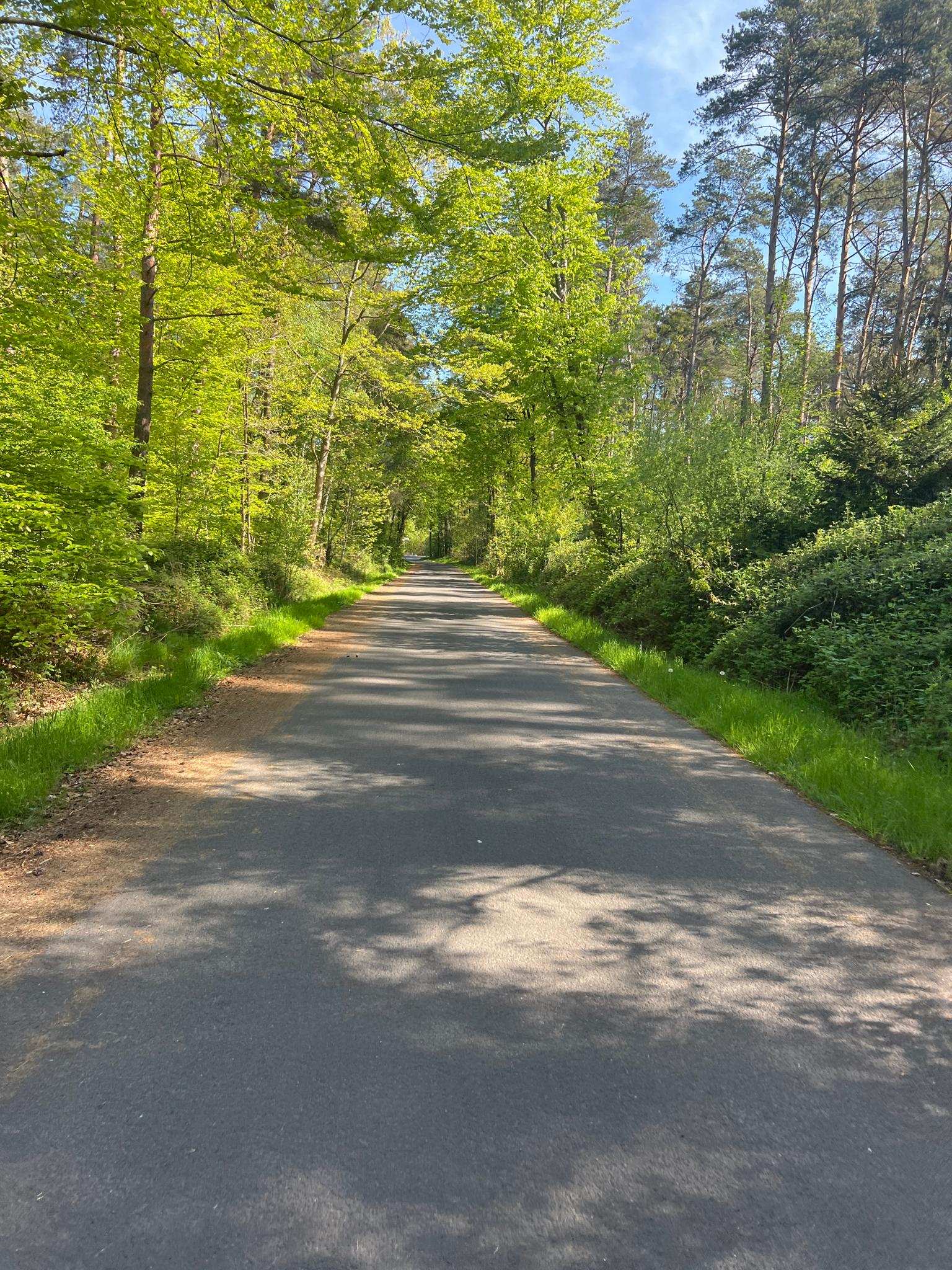 Hier ist ein schönes Stück im Wald asphaltiert. Hier kann man entspannt nebeneinander radeln.