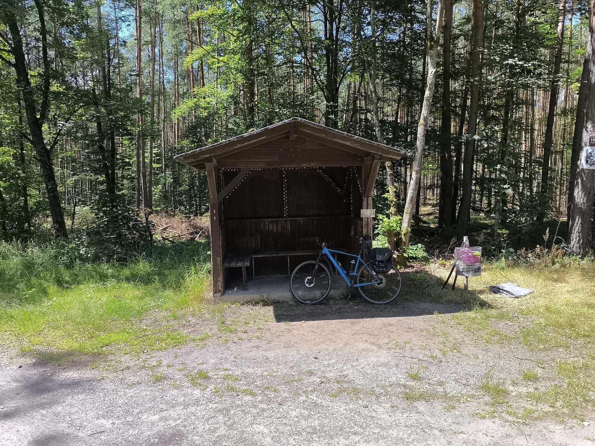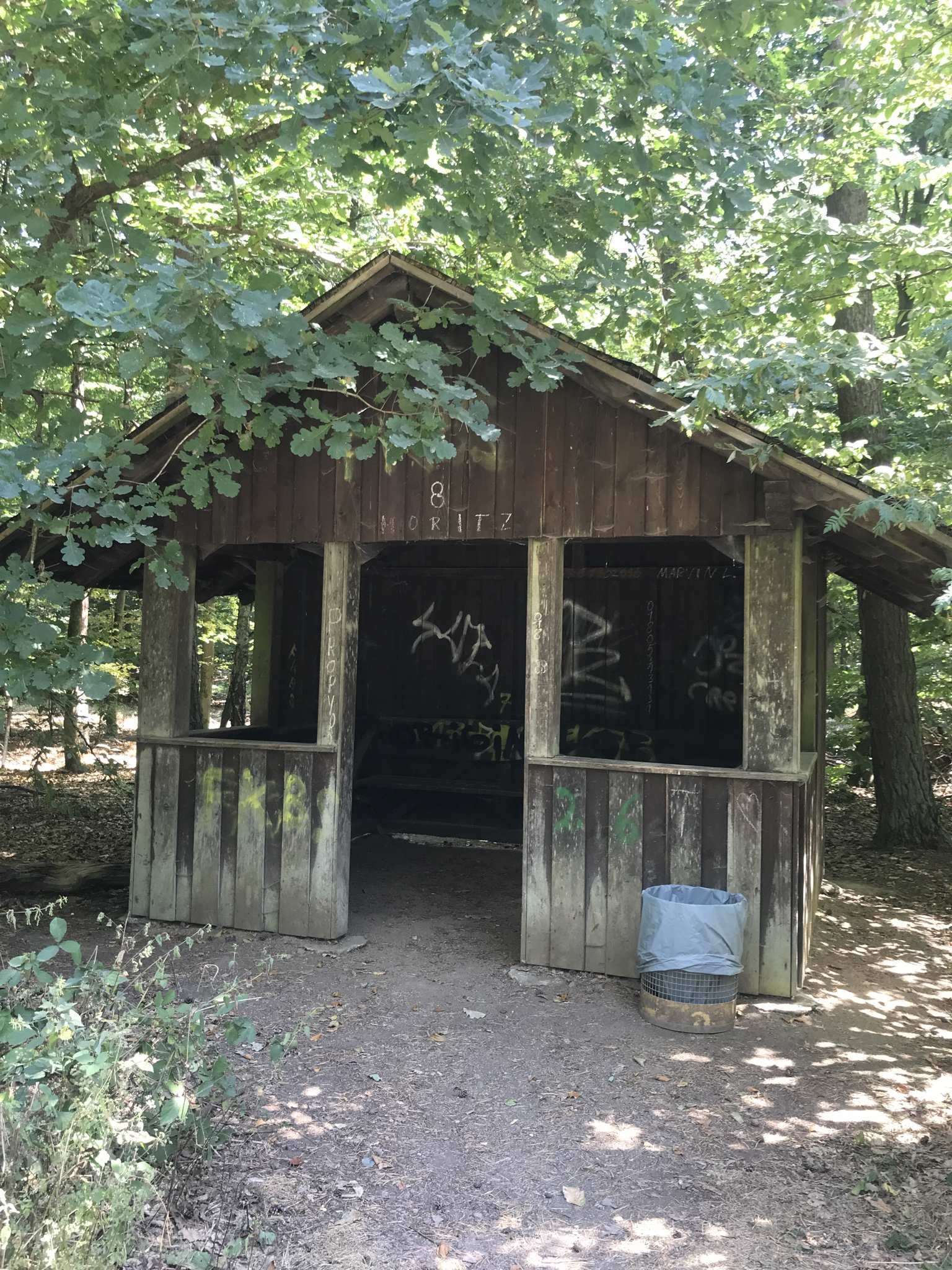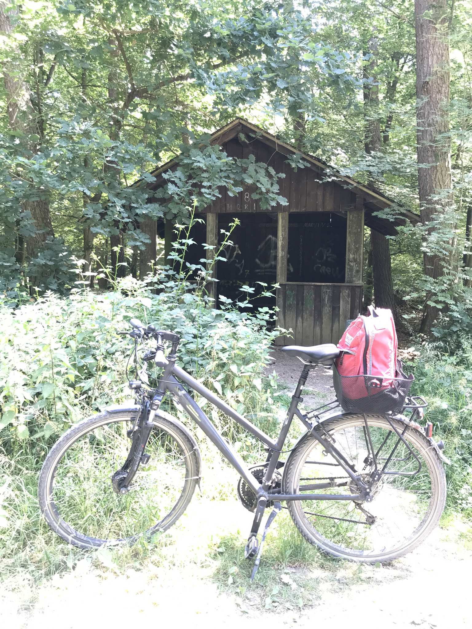 Auf dem Weg von Seligenstadt nach Jügesheim an der Kreuzung zur „Lange Schneise“ befindet sich eine Schutzhütte.