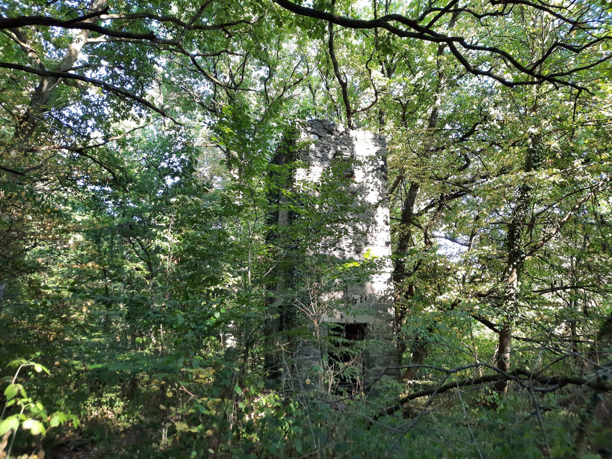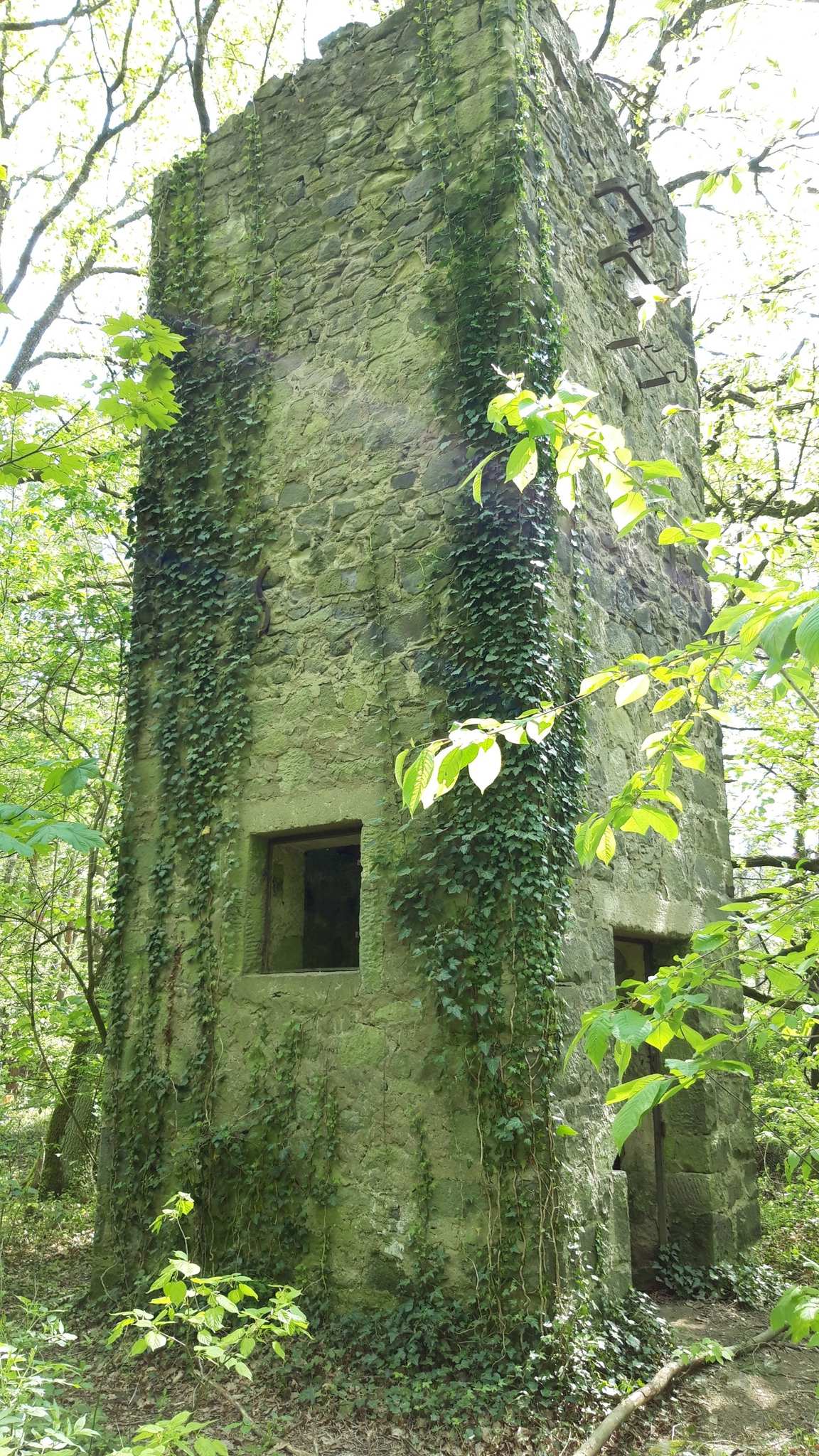 Es ist ein recht massiver Turm. Es steht etwas abseits vom eigentlichen Steinbruch entfernt.
